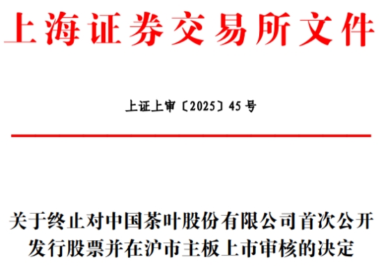 中国经济网3月22日讯所网坐昨晚发布关于终止对中国茶叶股份无限公司(简称“中国茶叶”)初次公开辟行股票并正在沪市从板上市审核的决定。