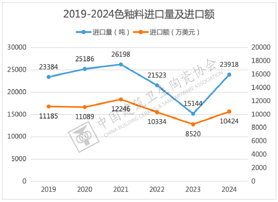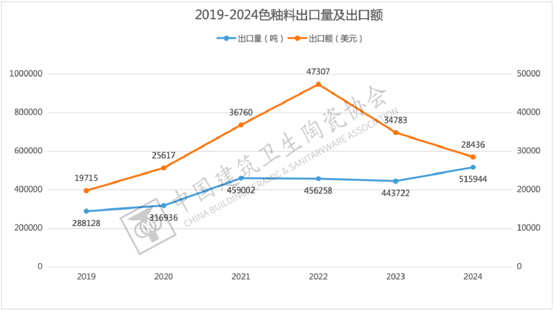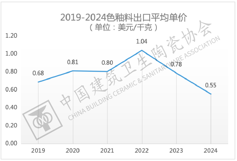 近年来,跟着我国陶瓷企业推进产能全球化结构,色釉料出口规模全体连结稳步增加,取此同时,产物出口平均单价正在2022年达到汗青高点后持续两年下降,2024年降至0。55美元/千克的低点,量增价跌态势较着,应低价合作对利润的。